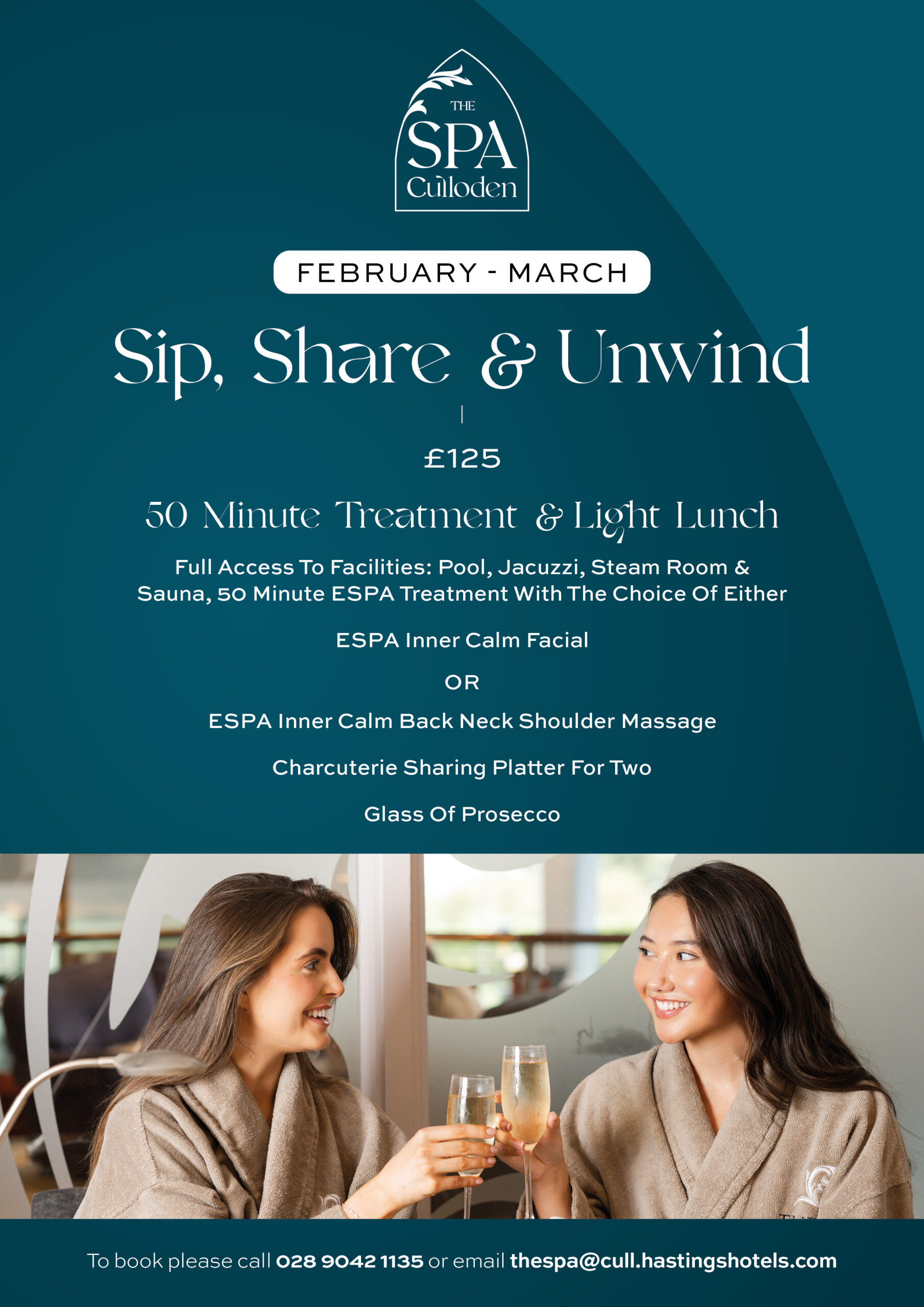 Indulge in a 50-minute ESPA treatment before savouring a delectable two-course lunch at the Cultra Inn—perfect for relaxation, rejuvenation, and a well-deserved treat.